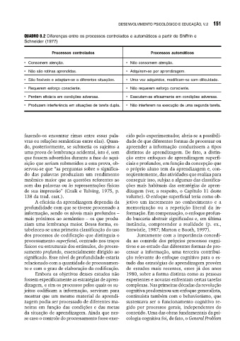 QUADRO 8.2 Diferenças entre os processos controlados e automáticos a partir de Shiffrin e
