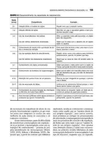 QUADRO 8.3 Desenvolvimento da capacidade de metamemória