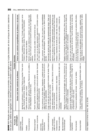 QUADRO 14.1 Relação entre os processos psicológicos envolvidos na aprendizagem e as funções docentes em dois enfoques de ensino caracteriza-