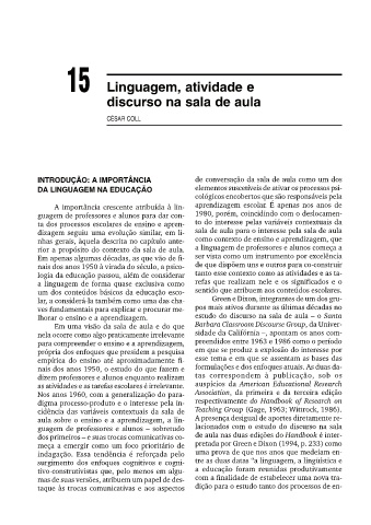 rior a propósito do contexto da sala de aula. a linguagem de professores e alunos começa a