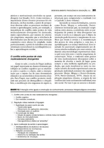 QUADRO 16.1 Interação entre iguais e construção do conhecimento: processos interpsicológicos envolvidos