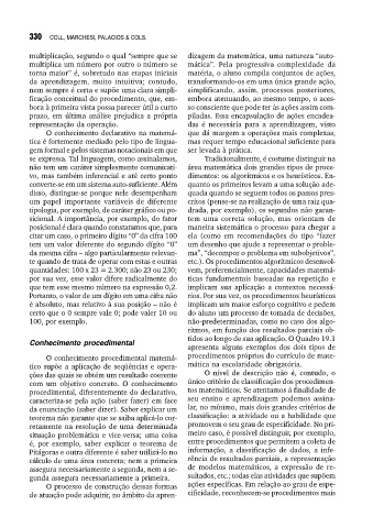 O conhecimento declarativo na matemá- que dá margem a operações mais complexas,