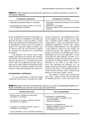 QUADRO 19.1 Alguns exemplos de procedimentos algorítmicos e heurísticos próprios do currículo da