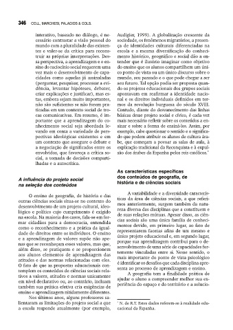 na seleção dos conteúdos história e de ciências sociais