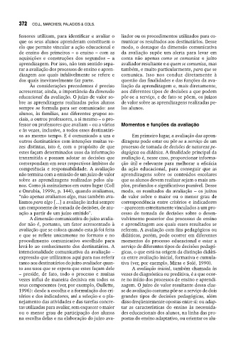 fessor ou professores que avaliam – ou a vários Momentos e funções da avaliação