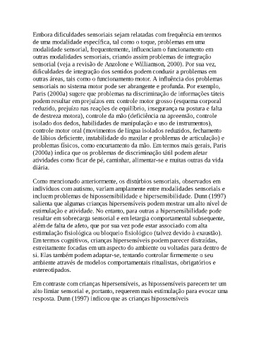 incluem problemas de hipossensibilidade e hipersensibilidade. Dunn (1997)
