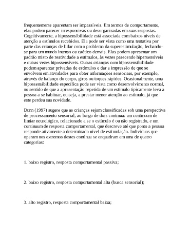 e outras vezes hipossensíveis. Outras crianças com hipossensibilidade