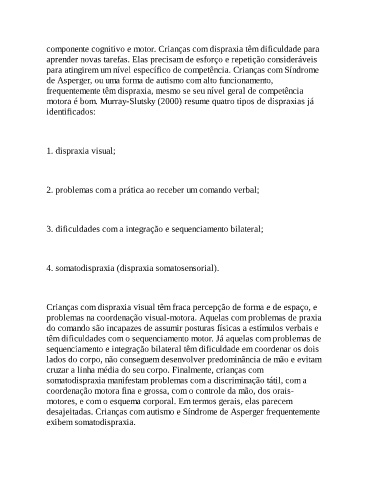 motora é bom. Murray-Slutsky (2000) resume quatro tipos de dispraxias já