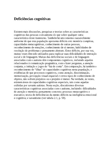 e cognitiva; e savantismo (ver tabela 2.1, p. 58).