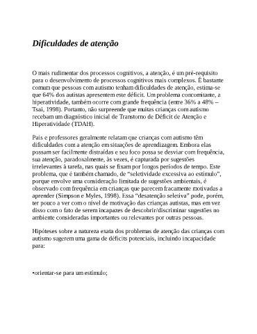 dificuldades com a atenção em situações de aprendizagem. Embora elas
