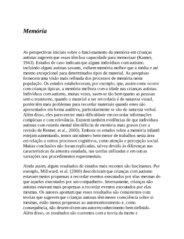 autistas sugerem que essas têm boa capacidade para memorizar (Kanner,