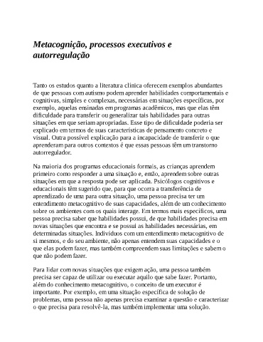 Metacognição, processos executivos e