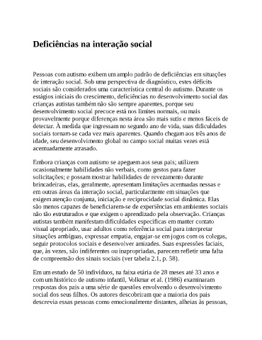 de interação social. Sob uma perspectiva de diagnóstico, estes déficits