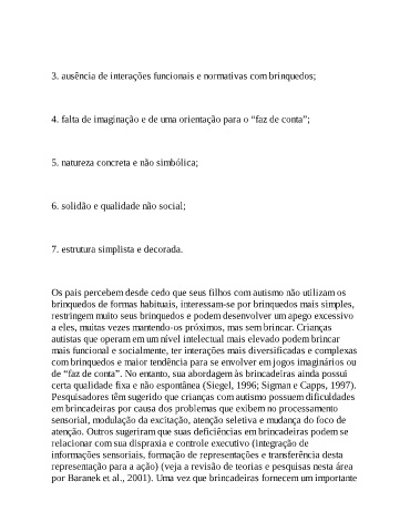 por Baranek et al., 2001). Uma vez que brincadeiras fornecem um importante