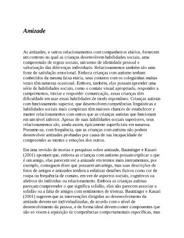 Em uma revisão de teorias e pesquisas sobre amizade, Bauminger e Kasari