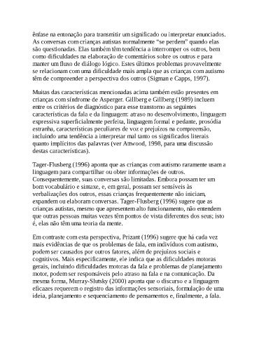 Tager-Flusberg (1996) aponta que as crianças com autismo raramente usam a