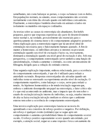 do comportamento estereotipado, é que ele é utilizado para reduzir a
