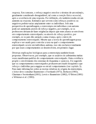comportamento estereotipado. Mesmo que a teoria de aprendizagem possa