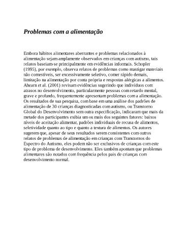 alimentação sejam amplamente observados em crianças com autismo, tais