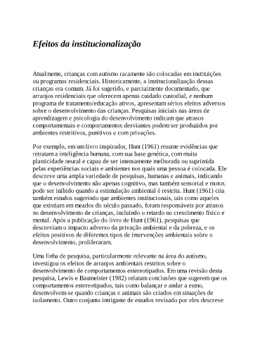 desenvolvimento de comportamentos estereotipados. Em uma revisão desta