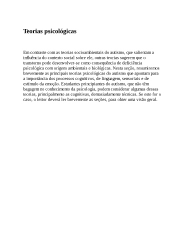 brevemente as principais teorias psicológicas do autismo que apontam para