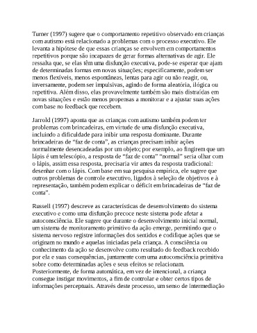 Turner (1997) sugere que o comportamento repetitivo observado em crianças