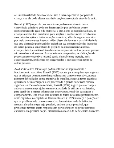 Russell (1997) especula que, no autismo, o desenvolvimento desta