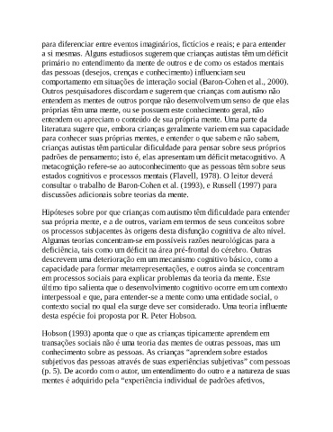 a si mesmas. Alguns estudiosos sugerem que crianças autistas têm um déficit