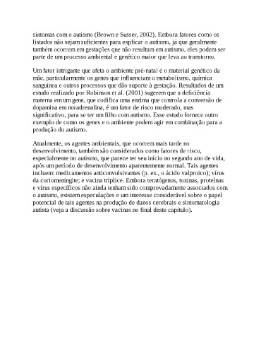 sintomas com o autismo (Brown e Susser, 2002). Embora fatores como os