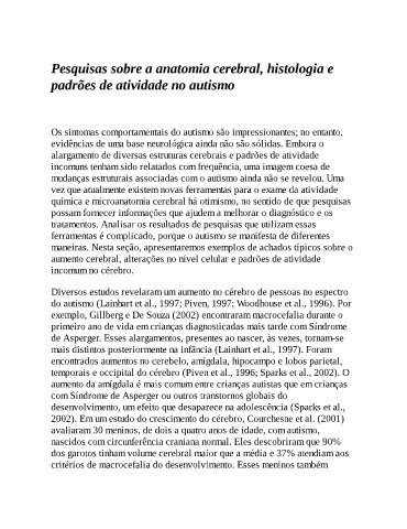 temporais e occipital do cérebro (Piven et al., 1996; Sparks et al., 2002). O