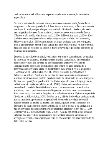 indivíduos não autistas (Muller et al., 1999). Estes estudos demonstram