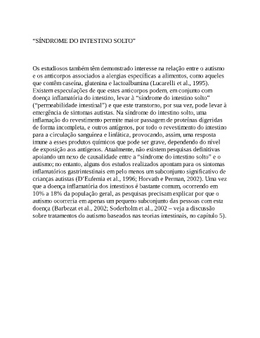 emergência de sintomas autistas. Na síndrome do intestino solto, uma