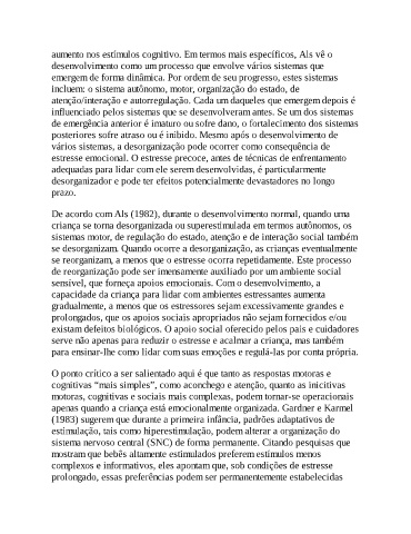 criança se torna desorganizada ou superestimulada em termos autônomos, os