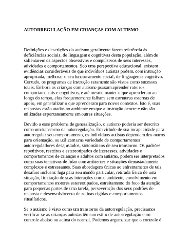 AUTORREGULAÇÃO EM CRIANÇAS COM AUTISMO