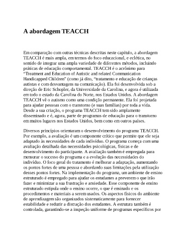 práticas de educação comportamental. TEACCH é o acrônimo para