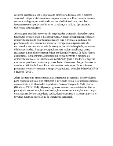 programas sensório-motores e terapia ocupacional, consulte Schneck (2001)