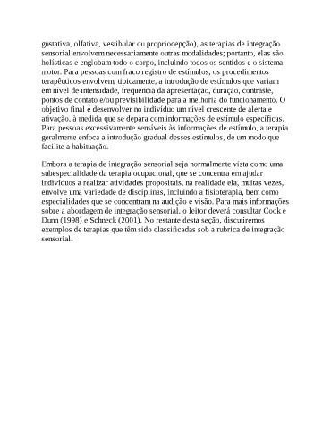 sobre a abordagem de integração sensorial, o leitor deverá consultar Cook e