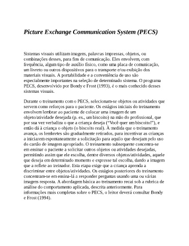 informações mais completas sobre o PECS, o leitor deverá consultar Bondy