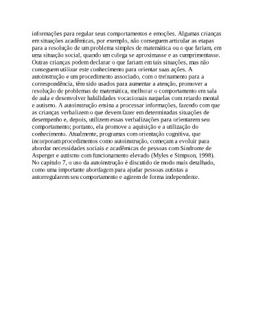 e autismo. A autoinstrução ensina a processar informações, fazendo com que