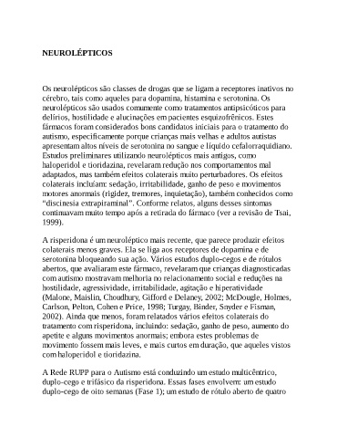 A risperidona é um neuroléptico mais recente, que parece produzir efeitos