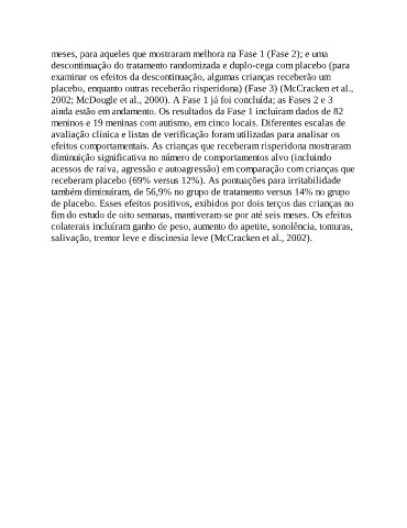 placebo, enquanto outras receberão risperidona) (Fase 3) (McCracken et al.,