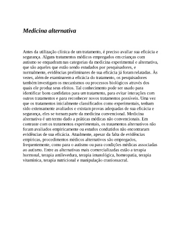autismo se enquadram nas categorias da medicina experimental e alternativa,