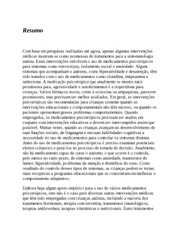 autista. Estas intervenções envolvem o uso de medicamentos psicotrópicos