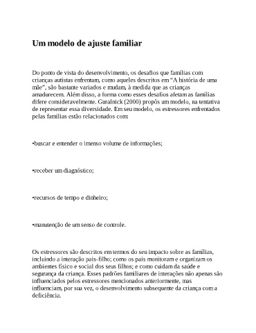 Os estressores são descritos em termos do seu impacto sobre as famílias,