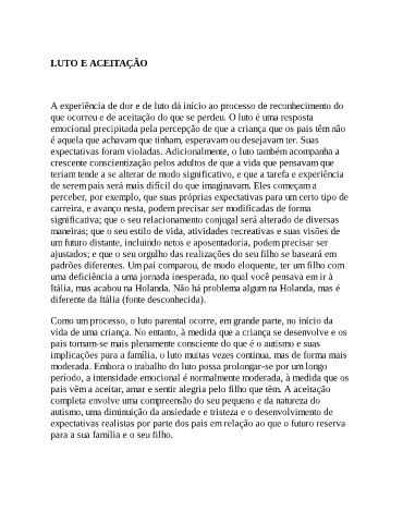 pais vêm a aceitar, amar e sentir alegria pelo filho que têm. A aceitação