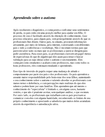 Aprendendo sobre o autismo