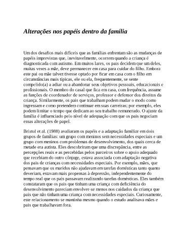 Bristol et al. (1988) avaliaram os papéis e a adaptação familiar em dois