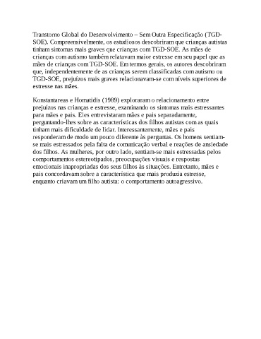 mães de crianças com TGD-SOE. Em termos gerais, os autores descobriram