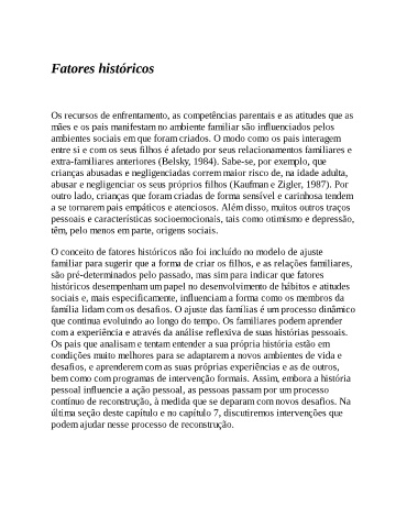 extra-familiares anteriores (Belsky, 1984). Sabe-se, por exemplo, que