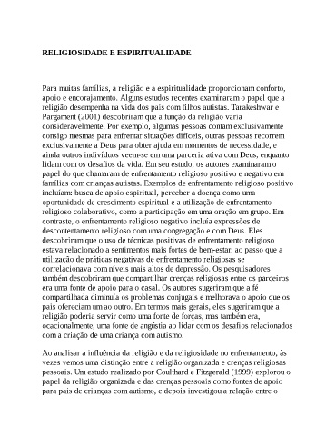 famílias com crianças autistas. Exemplos de enfrentamento religioso positivo